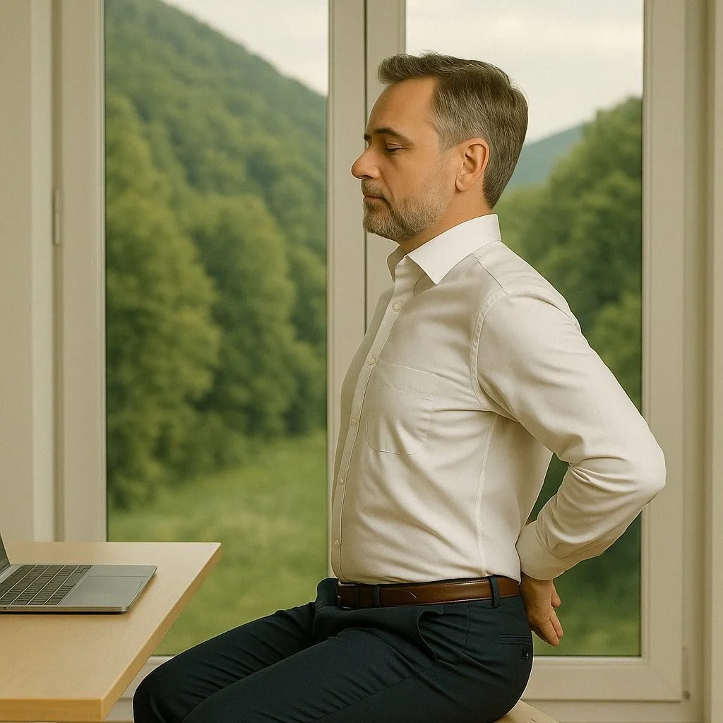 Durch sanfte, kontrollierte Bewegungen des Beckens – etwa durch langsames Vor- und Zurückbeugen mit gerader Wirbelsäule – gleicht sich die tieferliegende Muskulatur aus. So entsteht eine Haltung, die Stabilität, Leichtigkeit und innere Ruhe verbindet – ideal für konzentriertes Arbeiten, Lernen oder Regeneration.